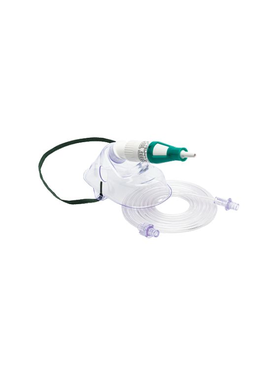 – Transparent air entrainment mask with soft anatomical form with easily adjustable elastic strap.