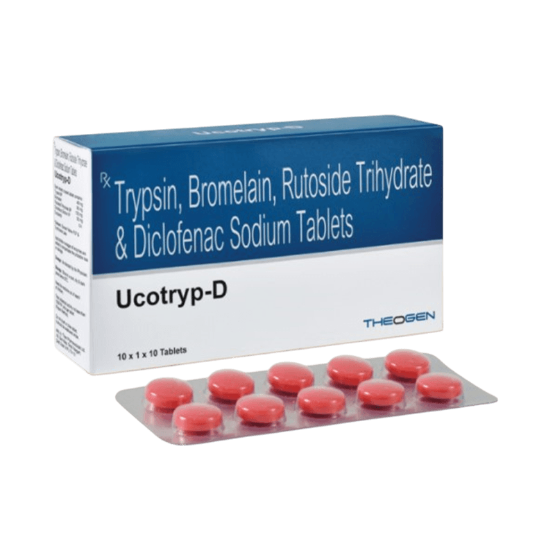 🧪Salt Composition:Trypsin 48 mg + Bromelain 90 mg + Rutoside 100 mg + Diclofenac 50 mg
